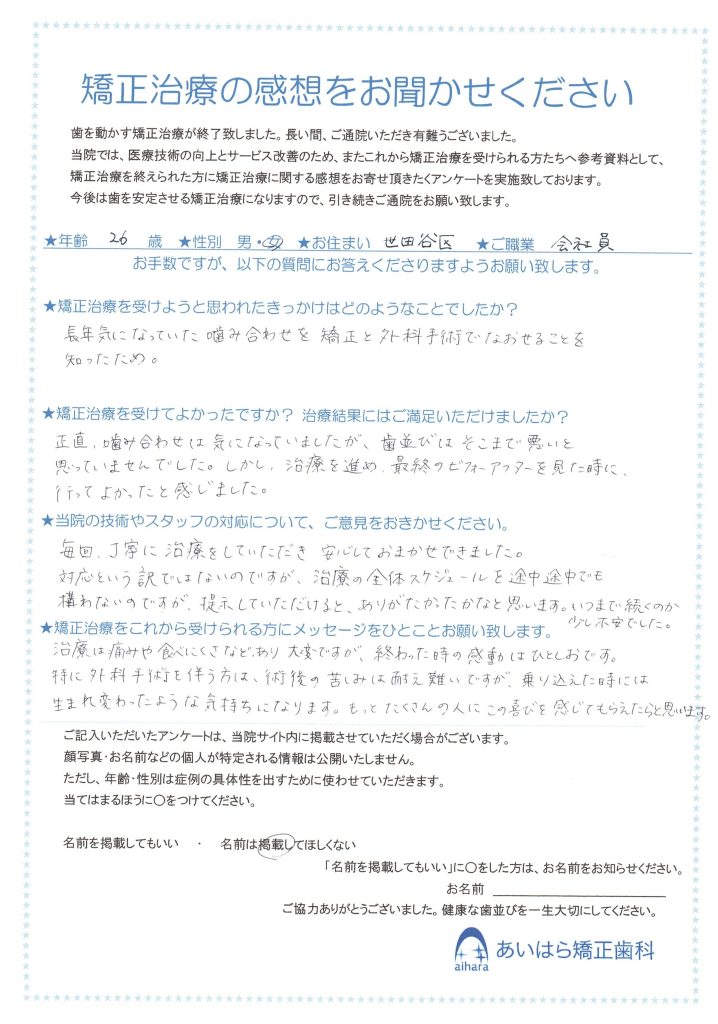 長年気になっていた噛み合わせを矯正と外科手術でなおせることを知ったため。