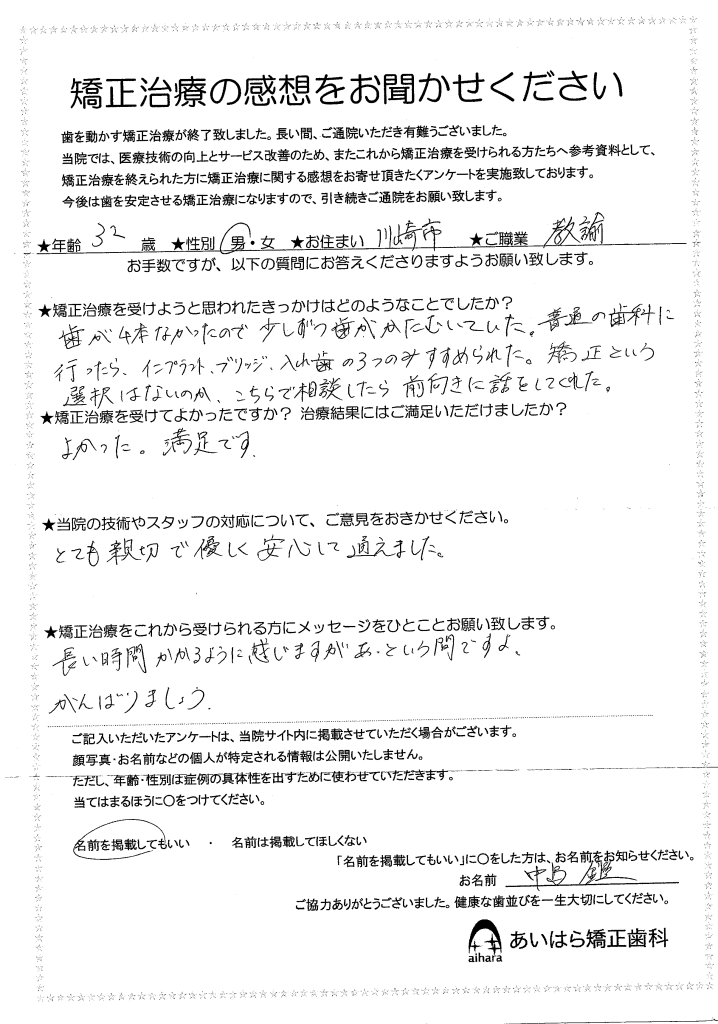 矯正治療をこれから受けられる方にメッセージをひとことお願致します。