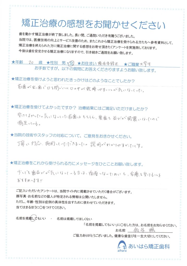 前歯が出っ歯で口を閉じにくく口の中が乾燥しやすいことが気になっていた。